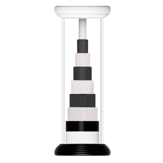 - Flip it one way, and the rings form a black-and-white stack